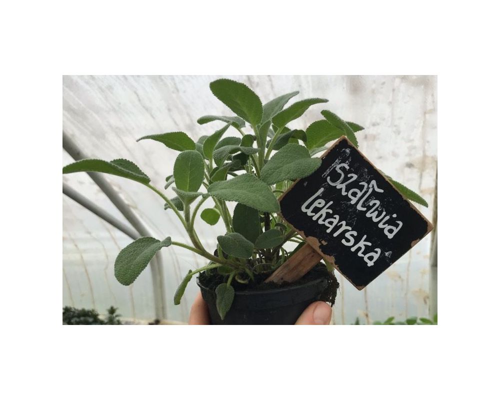 Sadzonki są na razie nieduże, wymagają przesadzenia do większej doniczki. Szałwia lekarska - srebrne listki.