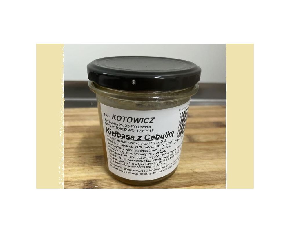 Kiełbasa w nieco innej odsłonie oraz z dodatkiem cebulki. Wszystkie słoiki są poddawane tyndalizacji i dzięki temu mogą być przechowywane w temperaturze od 2 do 18ºC przez pół roku.