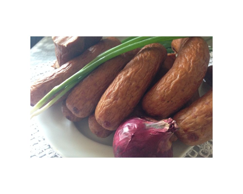 Łagodna w smaku, dobra na grilla, do pieczenia lub gotowania. Minimalna ilość, jaką można zamówić to 3 kiełbaski, czyli około 0,5 kg.